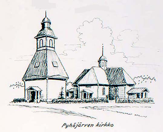 Pyhäjärven kirkko. Kirkko tuhoutui tulipalossa v.1940. Pyhäjärvi church. The church was destroyed in a fire in 1940. Pyhäjärvi Kirche. Die Kirche brannte im Jahre 1940 nieder. Pyhäjärvi kyrka. Kyrkan förstördes i en brand 1940.